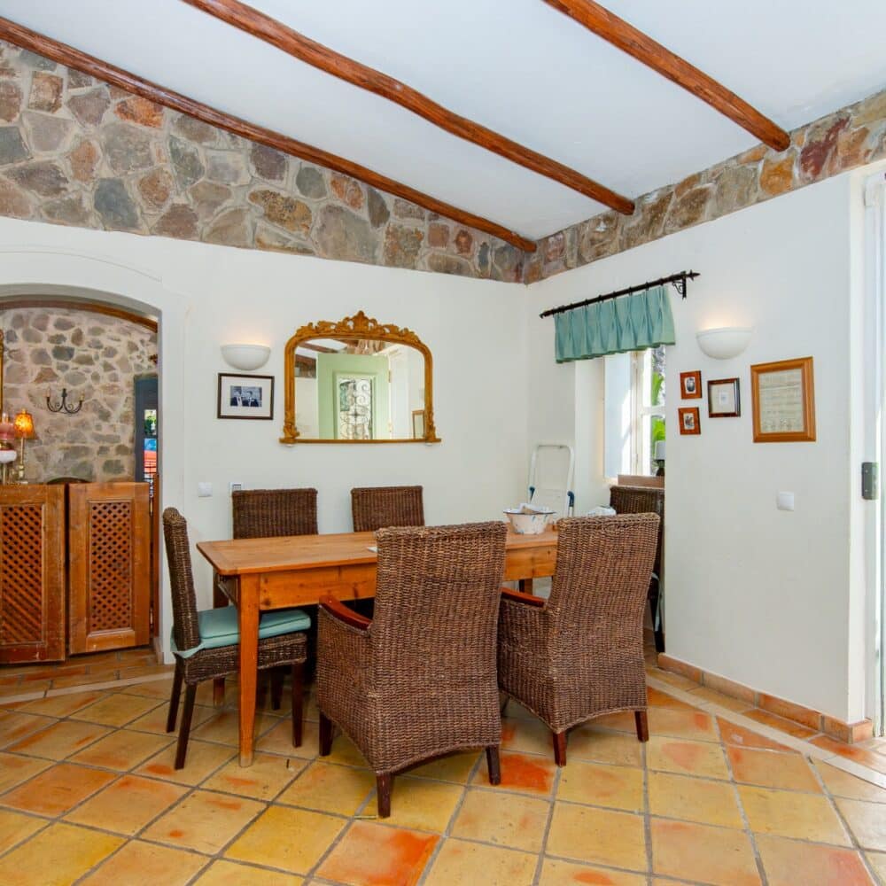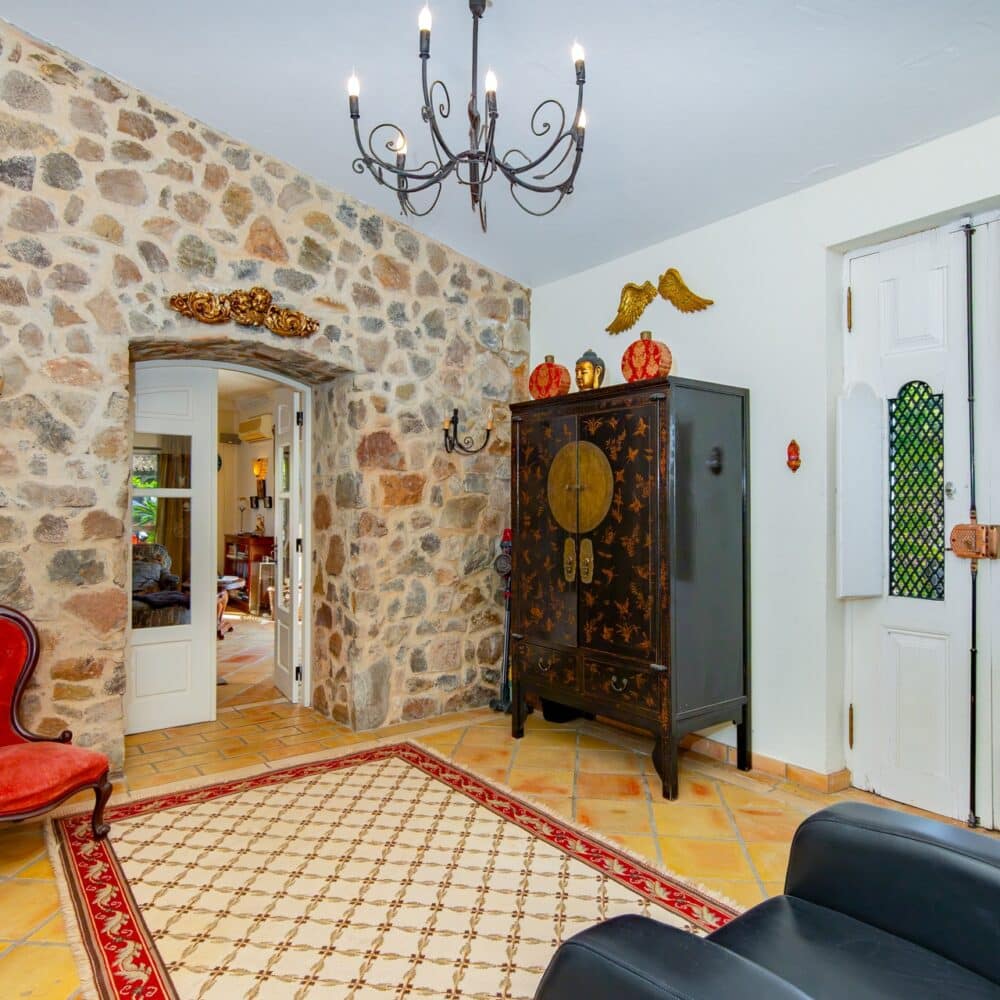 The main villa has been carefully restored to retain its original character while incorporating modern comforts. It offers three spacious en-suite bedrooms, including a standout master suite with dressing area and Juliet balconies overlooking the surrounding landscape. The interior living space is both elegant and functional, featuring four reception areas, including a large south-facing lounge with direct access to terraces, a formal dining room, a generous kitchen, and a welcoming entrance hall-ideal for family living or entertaining guests.