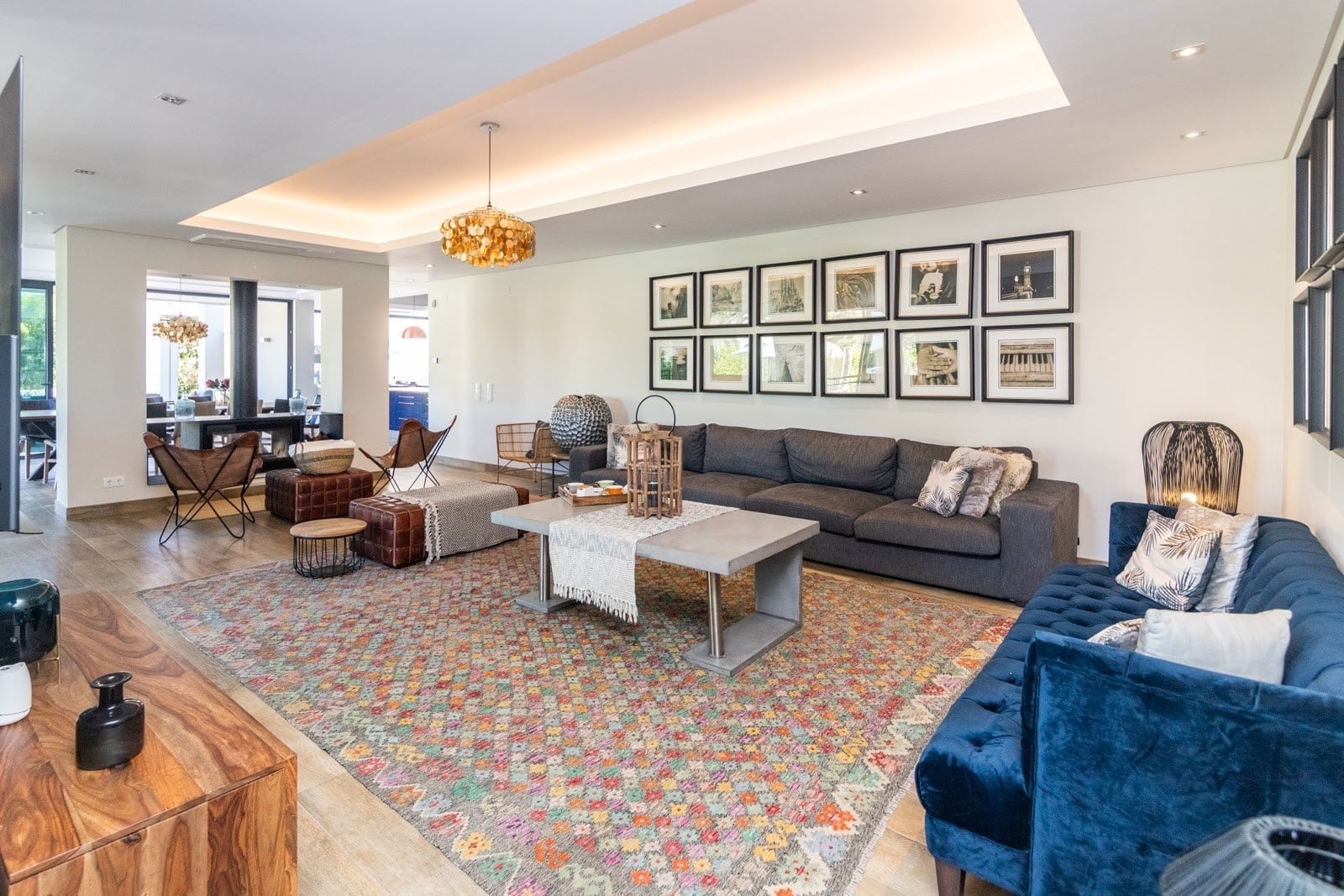 Step inside to a light-filled **open-plan living area** featuring high ceilings, bespoke finishes, and a seamless flow between the **kitchen, dining and lounge spaces**. Floor-to-ceiling glass doors open onto expansive terraces, creating effortless **indoor-outdoor living** ideal for family life and entertaining.